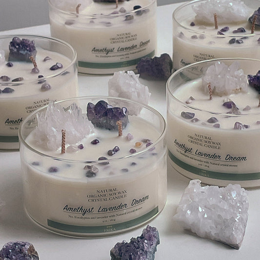 Amethyst Lavender Dream Natural crystal stone candle with Crystal bamboo clip 280g
