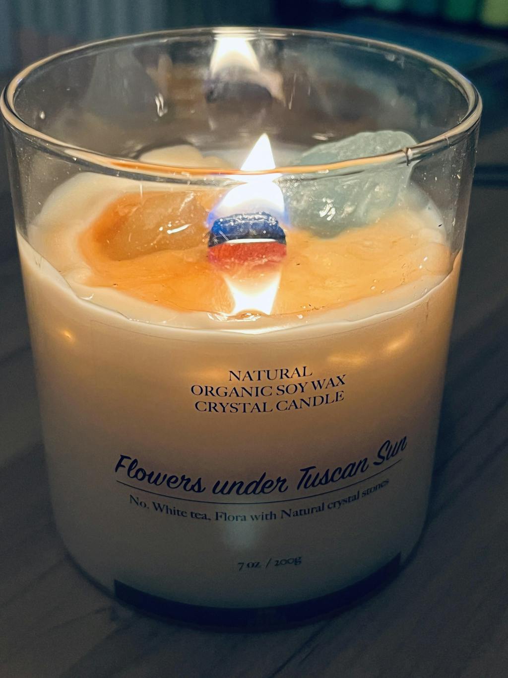Flowers under Tuscan Sun Natural crystal stone candle with Crystal bamboo clip 200g